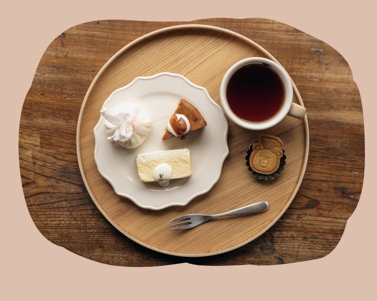 犬山のカフェ「くまと珈琲」はスペシャルティコーヒーとスイーツをお楽しみいただけるカフェです。おすすめメニューはおやつセット。日替わりで並ぶ小さなサイズのチーズケーキとコーヒースイーツからお好きなものを組み合わせてあなただけのおやつセットに。犬山ではめずらしいスペシャルティコーヒーとご一緒にお楽しみください。