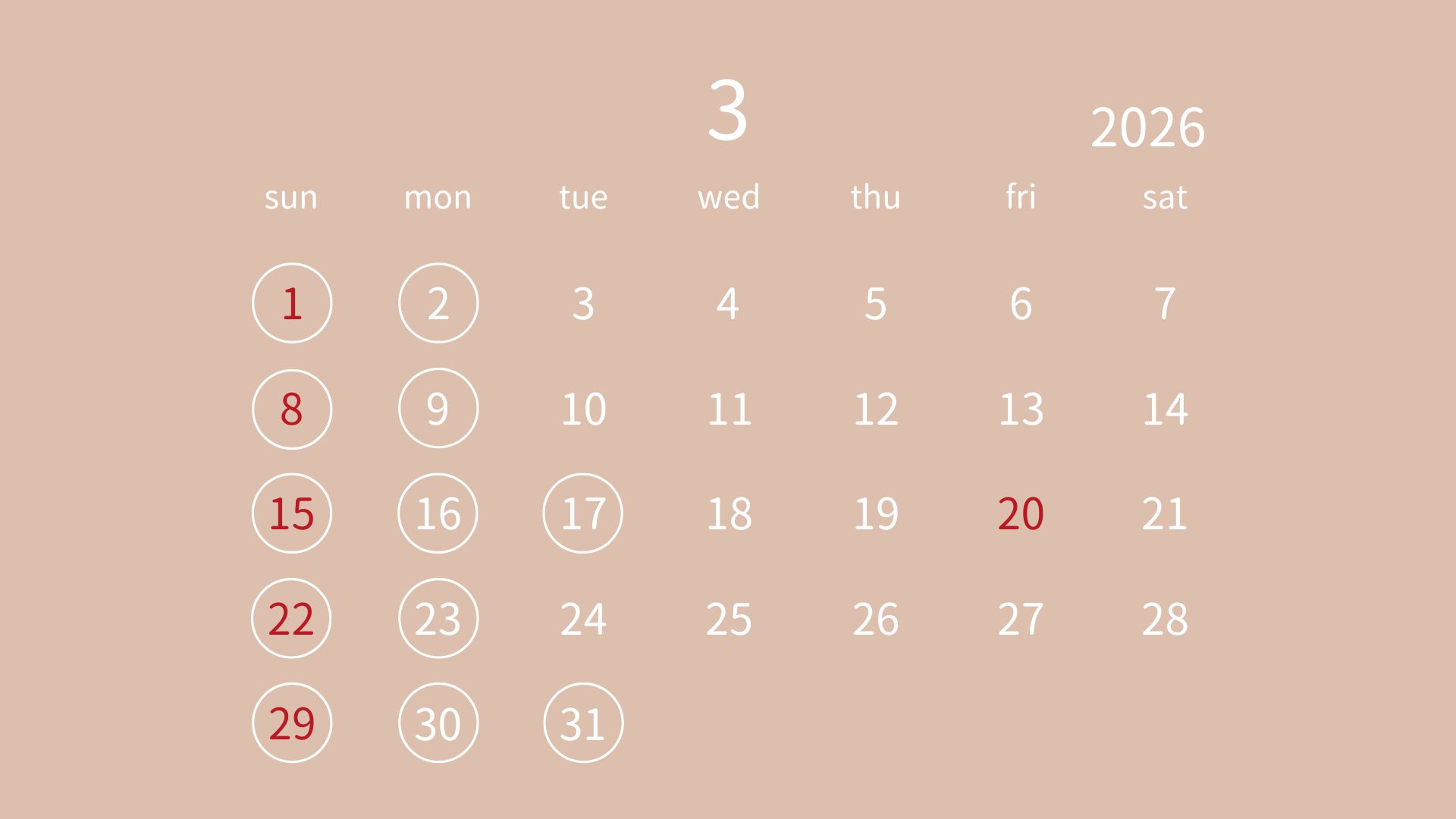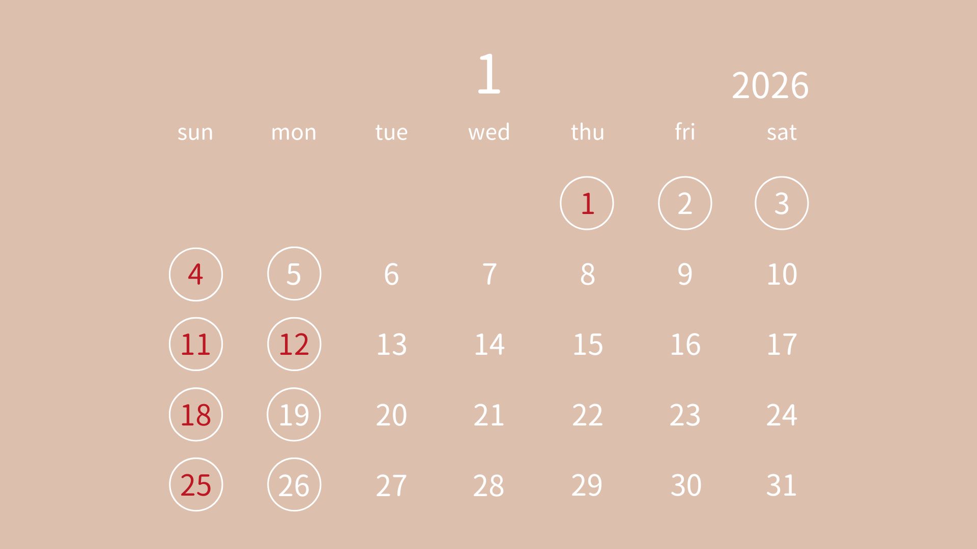 日曜日・月曜日・祝日